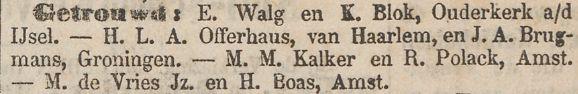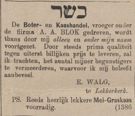 In Ouderkerk woonden destijds slechts drie joodse families. De gemeenschap telde op haar hoogtepunt 18 tot 25 personen, te weinig om een minjan (het vereiste quorum van tien mannen van dertien jaar of ouder voor een gebedsdienst) te vormen. Daarom moest de familie Walg-Blok voor religieuze diensten uitwijken naar Lekkerkerk. Mogelijk was dit de reden dat het gezin in 1877 naar Lekkerkerk verhuisde.