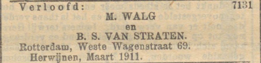 In april 1888 vertrok ook de familie Walg naar Rotterdam. Zij woonden op verschillende adressen in de stad, voordat zij zich in 1901 vestigden in de Weste Wagenstraat nummer 69. Het zal daar ongetwijfeld een levendig huishouden zijn geweest, want naast Mietjes zes broertjes en zusjes verbleven er ook regelmatig nichtjes en neefjes tijdelijk in huis.
